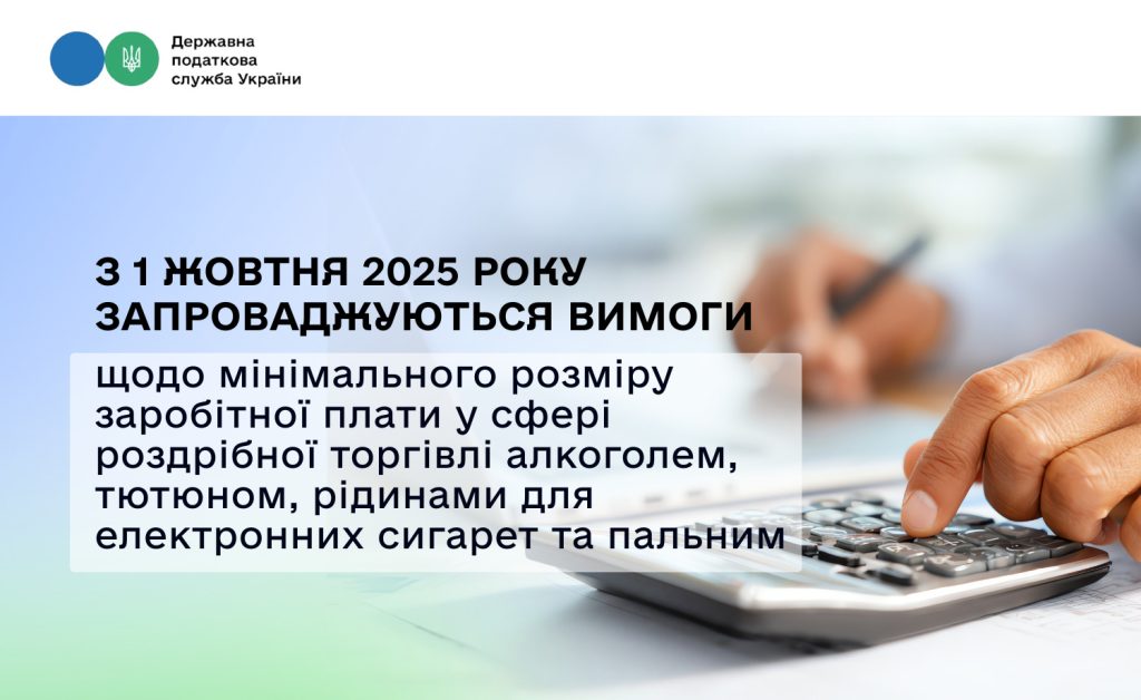 З 1 жовтня 2025 року запроваджуються вимоги щодо мінімального розміру заробітної плати у сфері роздрібної торгівлі алкоголем, тютюном, рідинами для електронних сигарет та пальним