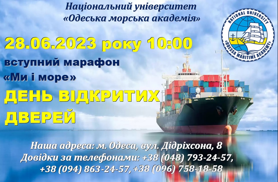 ДЕНЬ ВІДКРИТИХ ДВЕРЕЙ в НУ “ОМА” у живому форматі, який відбудеться 28 червня 2023 року (середа) о 10:00 за адресою: