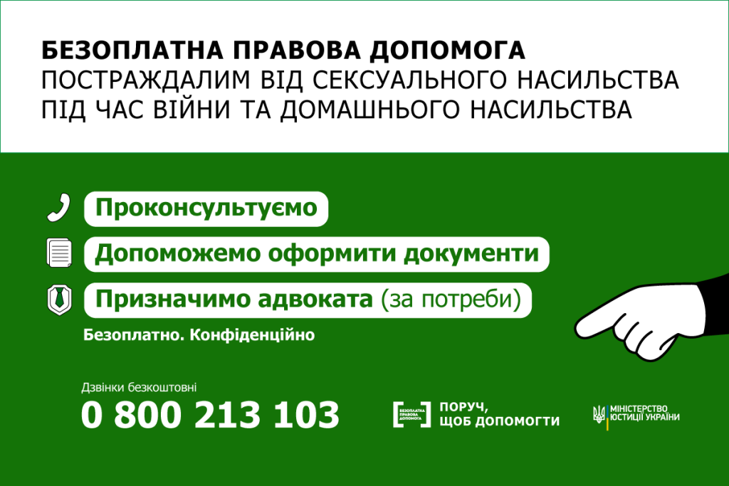 Система безоплатної допомоги запускає кампанію про допомогу постраждалим від від сексуального насильства, пов’язаного зі збройною агресією росії проти України, та домашнього насильства.