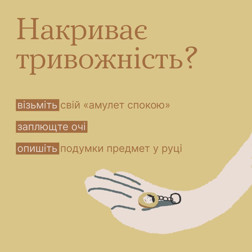 Коли відчуваєте, що стає зле, візьміть свій амулет, тримайте міцно, мов руку близької людини. Заплющте очі. Зробіть вдииих і вииидииих.