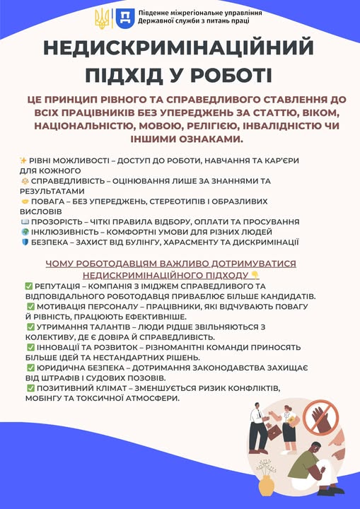 Недискримінаційний підхід у роботі 10.10.2025 Південне міжрегіональне управління Державної служби з питань праці