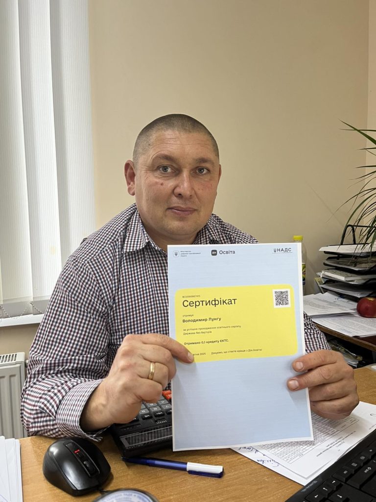 Начальник відділу ЦНАП Буджацької селищної ради Володимир Лунгу разом з адміністраторами пройшли освітній серіал «Держава без бар’єрів» на національній онлайн-платформі Дія. Цифрова освіта та отримали відповідні сертифікати