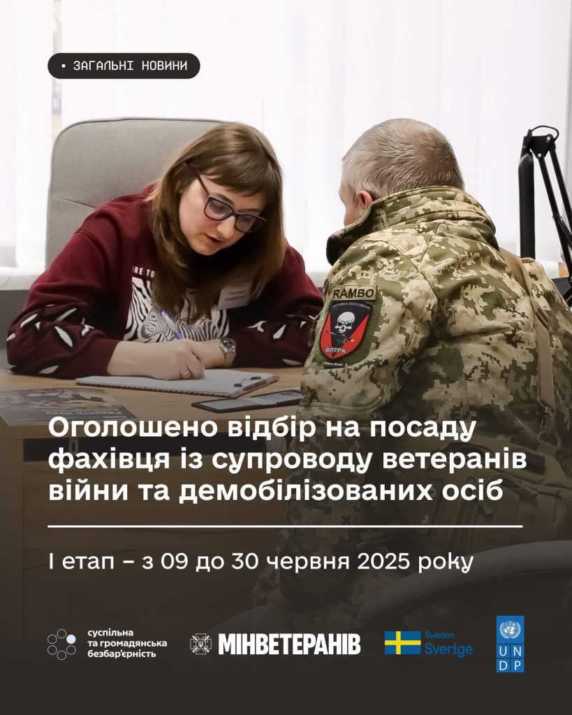 Послугу подачі заяви на відбір розроблено Мінветеранів за сприяння «Проєкту підтримки Дія», що реалізується Програмою розвитку ООН (ПРООН) в Україні за фінансування Швеції.