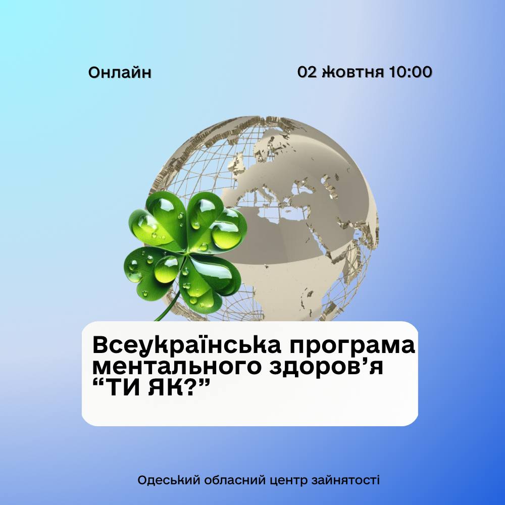 Одеський обласний центр зайнятості запрошує на онлайн-семінар в межах Всеукраїнської програми ментального здоров’я “Ти як?” від Одеська філія Одеського обласного центру зайнятості.
