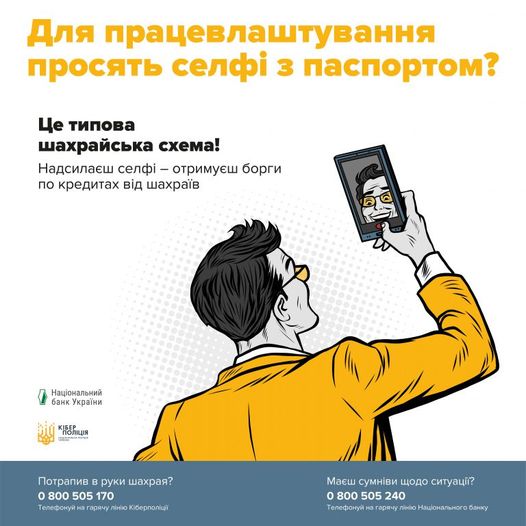 Шахраї просять надати селфі з паспортом, а потім набирають онлайн-кредитів на своїх жертв.