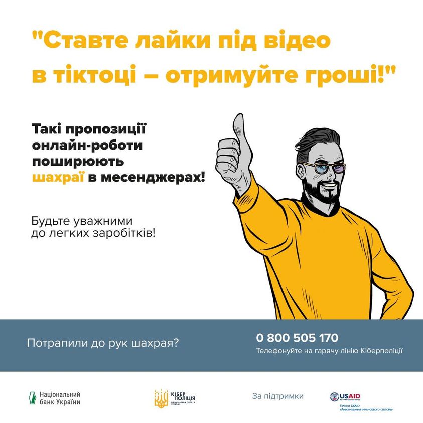 Якщо ви постраждали від шахрайства, заповніть форму зворотного зв’язку на сайті кіберполіції за посиланням: https://ticket.cyberpolice.gov.ua/ або повідомте про цю ситуацію за номером телефону: 0 800 505 170.