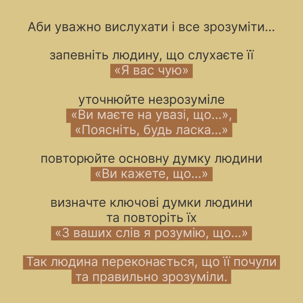 - їй важливо усвідомити, що її почули і зрозуміли;