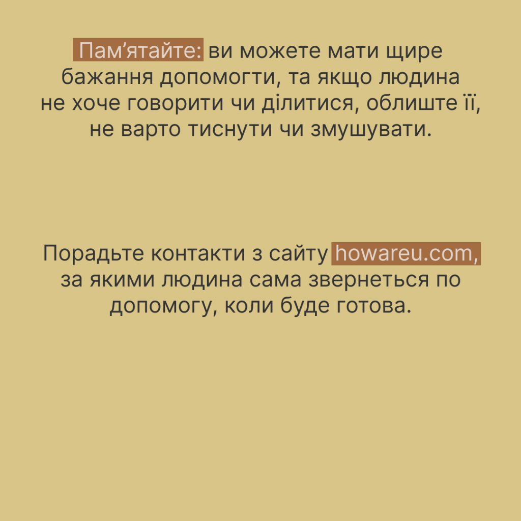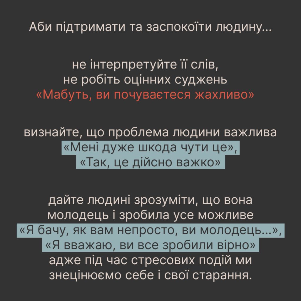 У цьому дописі ви знайдете кілька порад, як вислухати людину, яка пережила сильний стрес, що важливо проговорити і як не зробити гірше. Адже у такому стані вона не завжди готова розмовляти, а ваше щире бажання допомогти може викликати байдужість чи навіть агресію.